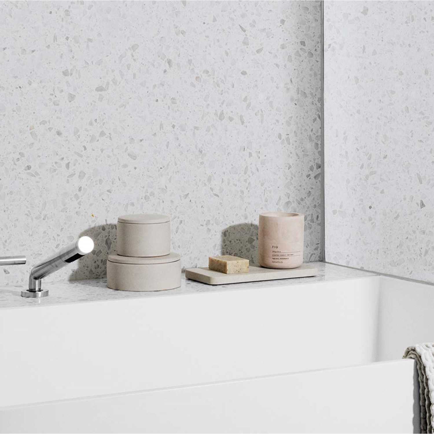 Relax and unwind with Blomus' candle in Fig, a sweet scent housed in a modern pink-toned concrete container. Blomus candles are created using natural soy wax which produces a low amount of soot.