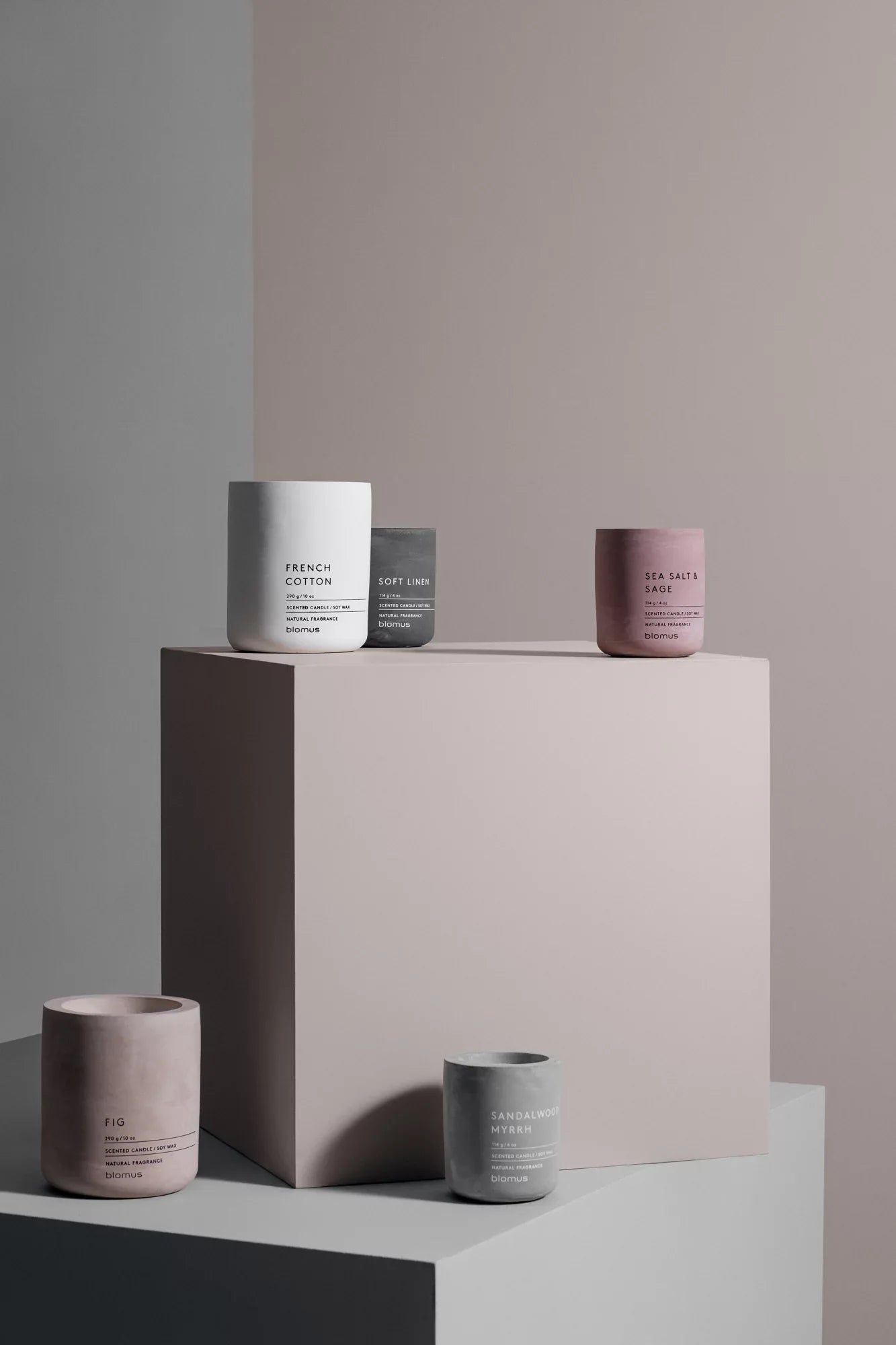 Relax and unwind with Blomus' candle in Sea Salt & Sage, a refreshingly herbal scent, housed in a rose toned concrete container.
