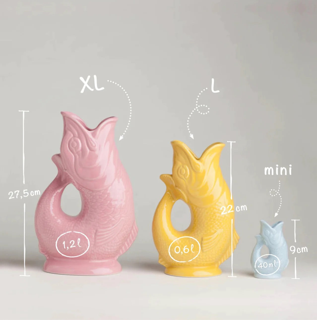 This iconic Gluggle Jug XL adds a classic charm to any home. Handmade in England, it adds a timeless touch as a jug or a vase. It's large size provides an eye-catching display. Add a bit of nostalgia to your home with this original Gluggle Jug.