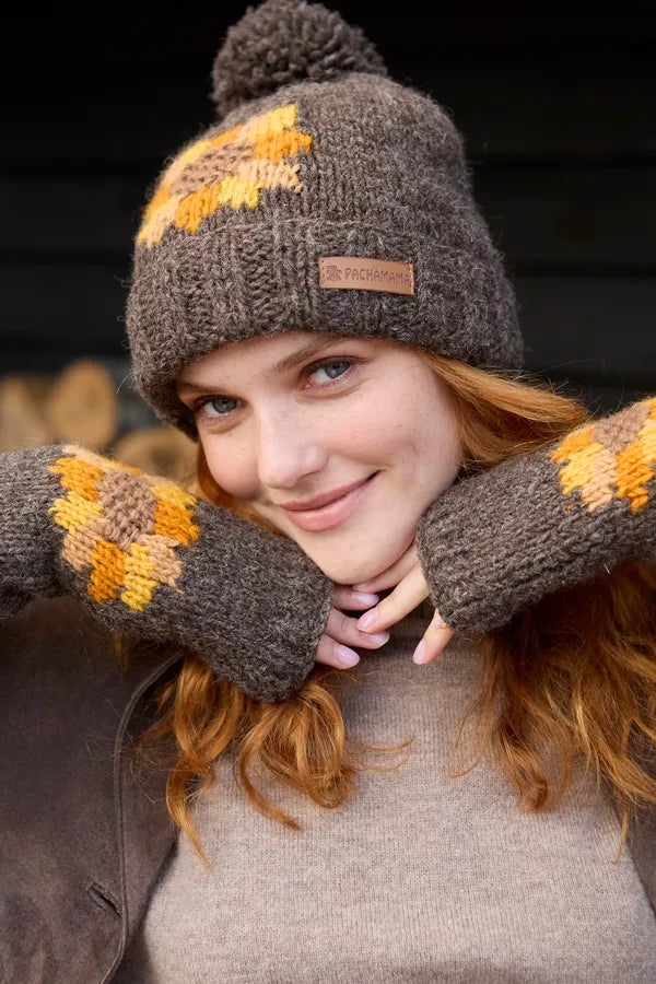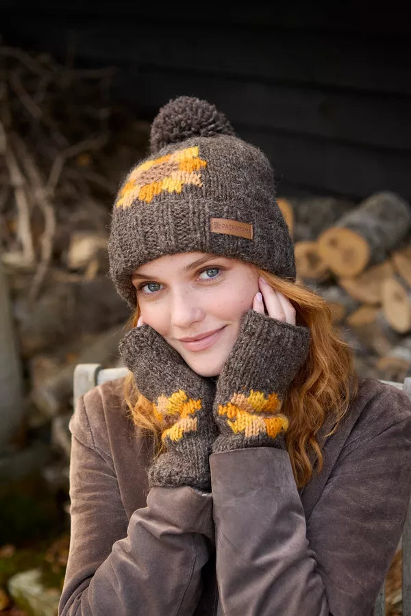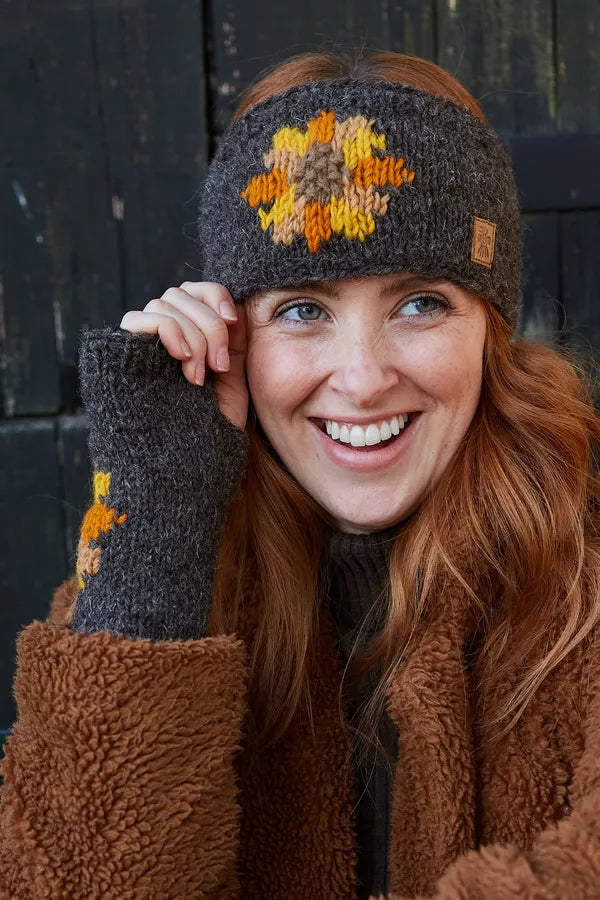 The Sunflower Handwarmers are individually hand-knitted using 100% wool. Fleece-lined to keep your hands warm.