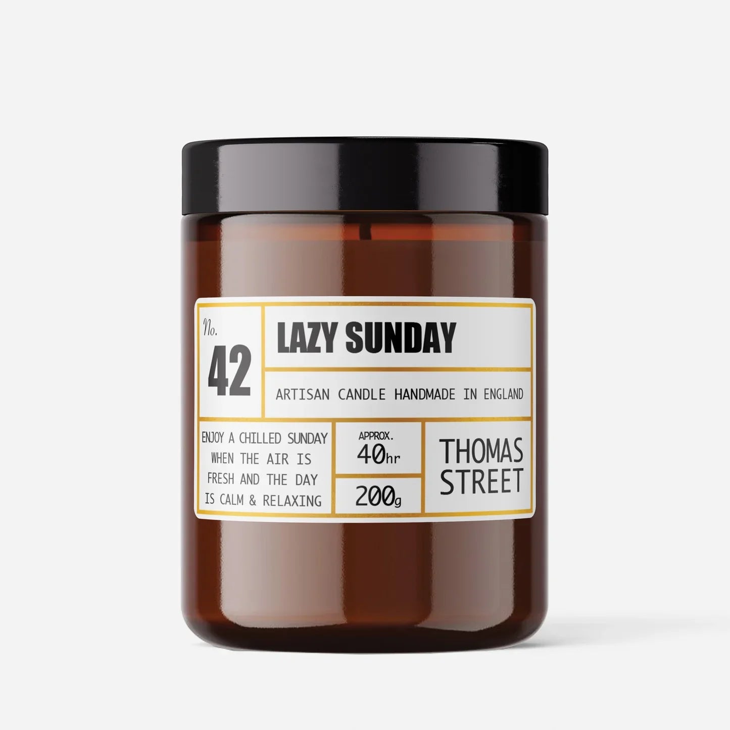 No 42. Helping you to relax, the lazy Sunday candle, with a fresh air fragrance to help chill you out.